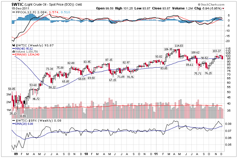 First, let’s look at the 3 year chart for West Texas Intermediatenoting the steady rise in price from the lows of late 2008: