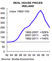 Household credit has now fallen from its peak of 164 percent of household disposable income to 146 percent in the third quarter of 2011. While still high, this readjustment is a marked improvement and if the trend continues, it could provide a boost to the housing market as consumers feel that their financial situation is more stable.