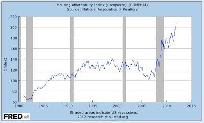 So we can all better understand this graph, here's how FRED measures housing affordability: