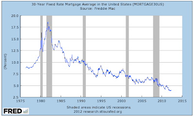 Fiserve is correct, housing affordability is at generational highs. While this is due, in part, to the drop in prices, it is also due in large part to the generational lows in 30 year fixed rate mortgage interest rates as shown here: