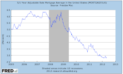 For completeness sake, here is a look at how low interest rates are on 5 year adjustable rate mortgages when compared to just 7 short years ago: