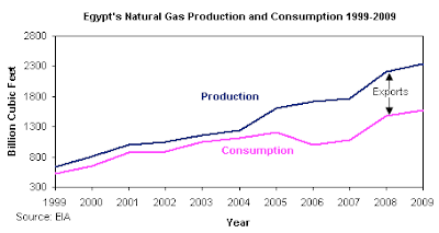 Here is a graph showing Egypt's natural gas imports and exports since 1999 showing how natural gas exports are growing: