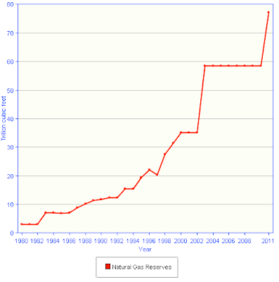 Lastly, here is a graph showing Egypt's proven natural gas reserves and how they have grown over the past three decades: