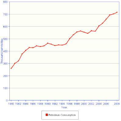 Here is a graph showing how much oil Egypt has consumed in BOPD for the last 30 years: