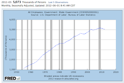 Here is a graph showing the number of state government employees since the mid-1950s: