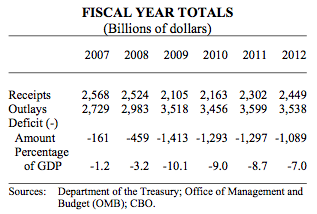In case you don't have a calculator handy, the cumulative deficits since fiscal 2007 total $5.712 trillion, this means that over one-third of America's $16.2 trillion debt has been accumulated in the last six fiscal years alone!