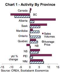 Home sales in both Alberta and Saskatchewan strengthened by 10 percent or more this year. This is in sharp contrast to British Columbia, home of Vancouver's real estate bubble, which has seen sales drop by 10 percent. Most other provinces have seen the volume of sales rise by between 2 and 7 percent.