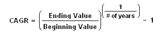 You’ll notice that I have used a somewhat less familiar accounting term, the compound annual growth rate as shown in this formula:
