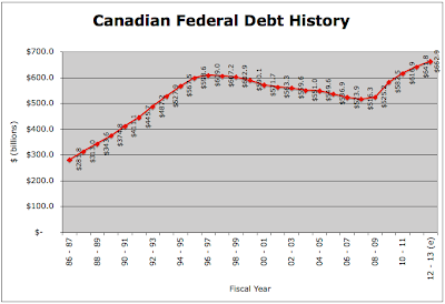Mr. Flaherty's first budget was released way back on May 2nd, 2006 for fiscal 2006 when the Great Recession was a concept not yet germinated. The Canadian government, thanks to years of economic growth and the steady hand of Paul Martin, was coming off a series of budget surpluses, estimated at $13.4 billion in 2005 – 2006 and projected to be $15.0 billion in 2006 – 2007 and $16.4 billion in 2007 – 2008. Nominal GDP growth was 5.1 percent in 2005 and was projected at a whopping 6.0 percent in 2006, slowing to "only" 4.6 percent in 2007. Ah, those were the days, weren't they? Interestingly, the economy was expected to grow at a very healthy rate even though short-term interest rates on three month treasury bills were projected to hit 4.1 percent in 2007, up from 2.7 percent in 2005. Doesn't it seem odd that now, with interest rates at near zero levels, the economy cannot muster up growth rates that are better than lukewarm at best?