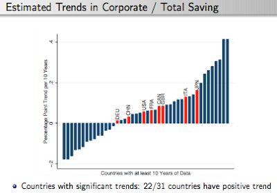 Here is bar graph showing the trend in corporate savings levels for 31 countries showing that corporate savings rose in 22 our of 31 countries: