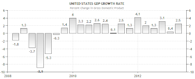 Notice that after the recession in the early 1990s and 2000s, that economic growth rates in excess of 5 percent were not uncommon. Such is not the case since 2008 as shown here: