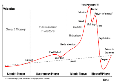In closing, a fascinating schematic showing the buildup of an asset bubble by Dr. Jean-Paul Rodrigue at Hofstra University gives us a really good look at the mindset of the house-buying public during the development of the housing market bubble and shows us that, as I noted above, we are likely just returning to the mean: