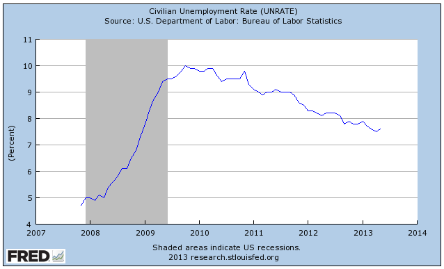 In November 2007, the unemployment rate was an unbelievable 4.7 percent. Four years into the recovery it sits at 7.6 percent.