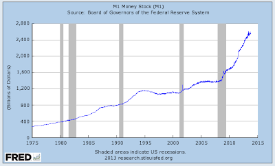 USA: Oye! Times readers Get FREE $30 to spend on Amazon, Walmart…I recently posted an article on the dropping velocity of money, a rather odd occurrence given that the Federal Reserve has been pumping and dumping as much "cash" as the system can handle in an effort to stimulate economic growth. Various measures of the money supply have increased dramatically over the past five years since the Fed began QE 1 in November 2008 especially when one looks back at their growth rate back to the mid-1970s.