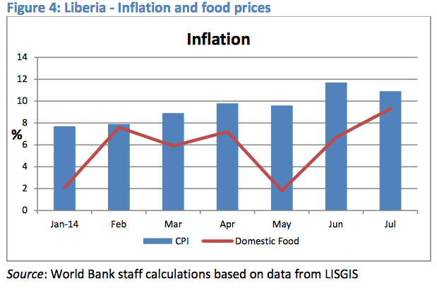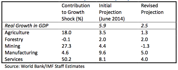 Liberia – growth reduced from 5.9 percent to 2.5 percent