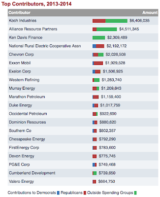 …and just under $30 million on campaign donations in the 2013 -2014 cycle, most of which went to Republican candidates as shown here: