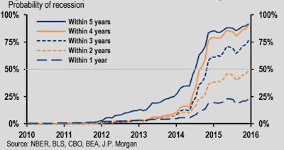 Let's close this posting with a graphic showing the odds of a recession occurring in 2016 according to JP Morgan:
