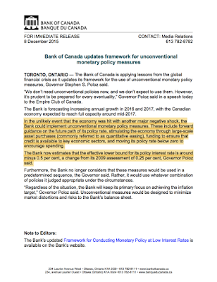 Here is the press release on how the Bank of Canada is updating its framework for unconventional monetary policy measures: