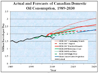As I stated earlier, for the purposes of this posting, I’d like to focus on Canada’s present and future oil needs and the likelihood that Canada may well need its own oil in the future as domestic consumption rises and production falls.