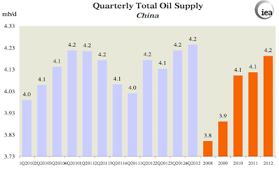 Again, from the IEA's website, here is a graph showing the quarterly domestic oil supply from China: