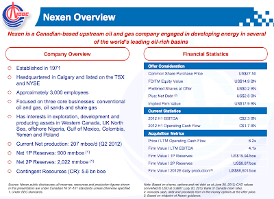 Let's take a brief look at Nexen for a moment. Here is a summary of Nexen's value from the perspective of CNOOC: