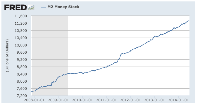 Now, let's focus on what happened to M2 since the beginning of the Great Recession: