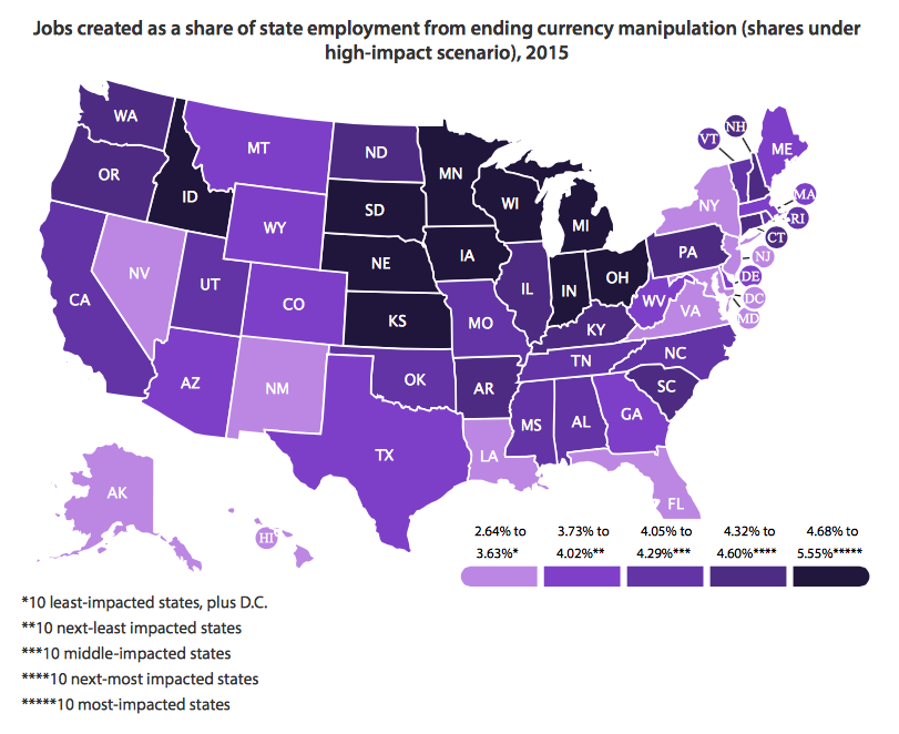 Here is a map that shows the jobs created as a share of state employment from ending currency manipulation: