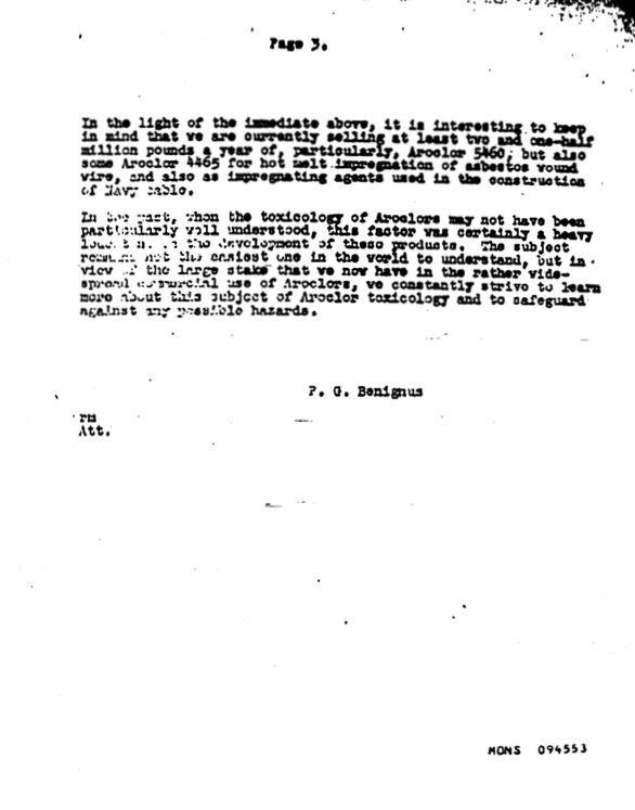 Here is an internal memo dating from October 11, 1937 where it is noted that experimental work with animals showed that prolonged exposure to both PCB vapour and liquids led to toxic effects: