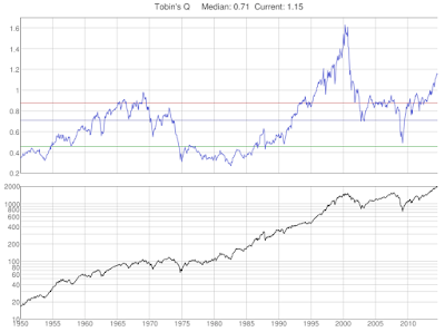 Now, let's look at a chart that shows the Q ratio for the entire economy to the present:
