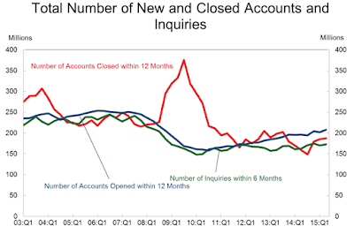 As well, the number of credit accounts opened (in blue) and number of credit inquiries (in green) have risen to or just below new post-Great Recession highs: