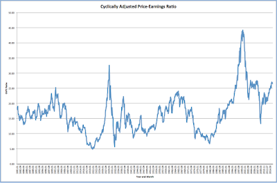 I can recall during the tech sector boom that many analysts suggested that the concept of price-to-earnings was no longer applicable to stock valuations, particularly since many tech sector companies had almost no earnings and extremely high valuations.  As we learned rather painfully, this was not the case and Dr. Shiller's analysis proved to be correct in the long-run.  At this point in time, it appears that the American stock market is still significantly over-priced when one compares present earnings to share prices to the levels experienced over the past century and that we should expect further volatility to the downside in the future.