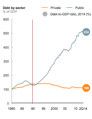 Let's open this section with a graphic showing what has happened to global private versus public sector debt since 2000: