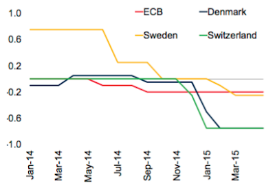 As it stands now, economists consider that current interest rates are at the "zero lower bound", that is, they cannot be lowered further since they are already at zero. As such, the Federal Reserve will be forced to implement newly minted monetary strategies when the already weak global economy falls further into recession. This is where the very concept of interest rates, as we have experienced them for generations, change. One of these strategies could involve the use of negative interest rates, a strategy that is already in place in Europe thanks to the European Central Bank as you can see on this graphic: