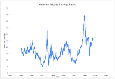 Let's close this posting by looking at the latest price-to-earnings data for the U.S. stock markets from Robert Shiller: