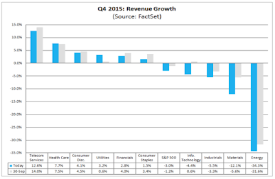 Note that in eight sectors, earnings growth in Q4 is projected to be lower than the level projected on September 30, 2015 and earnings shrinkage for the five most poorly performing sectors are expected to be larger than originally anticipated.