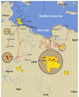 Here is a map showing the location of Libya’s oil fields and the country’s major pipeline infrastructure: