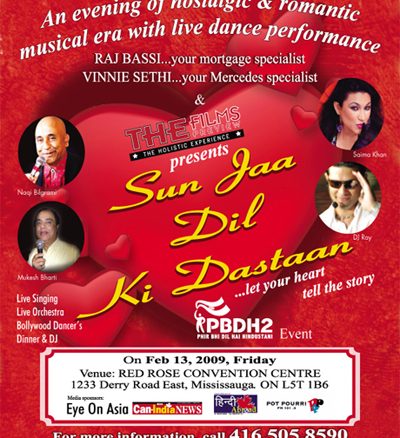What's On Feb 13 :: Sun Jaa Dil Ki Dastaan February 9, 2009 Robert Mull 0Contact: 416 505 8590 for tickets