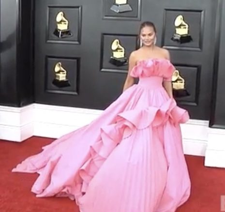 On the plus side, Chrissy Teigen looked gorgeous at The Grammys. The over-the-top pink gown she wore was beyond beautiful and she didn’t flash too much skin or look uncomfortable. But WHERE did she think she was going? Her voluminous (Oscar appropriate) dress had a loooong train and it was totally the wrong thing to wear for the occasion. The Grammys dress code is RELAXED – they say “black tie is suggested” and no one was ever thrown out for not being dressed up enough. The event is young and fun and extravagant rock n’ roll attire is expected – NOT formal attire….