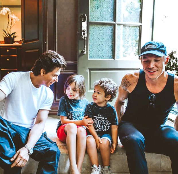 While in LA, Shah Rukh Khan reunited with his friend and international record producer Diplo who has also composed a single titled ‘Phurrrr’ for Jab Harry Met Sejal. Teasing his collaboration, Diplo has released a few photographs from the shoot. When they got some time off work, SRK spent some time with Diplo’s two adorable kids- Lockett Pentz, Lazer Pentz.