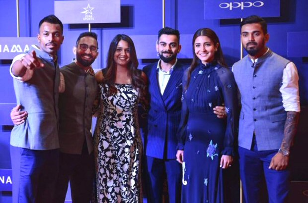 Virat Kohli and Anushka Sharma reinstate our faith in marriages and relationships. Fighting all odds and travails of leading extremely busy lives they have made it work and continue to do so. Anushka makes it sure that she attends all of her husband’s matches whenever it is possible and never misses watching him playing on screen if she is busy shooting. Virat has just won Cricketer Of The Year award and Anushka of course accompanied him to the function dressed in a pretty navy blue ruffled gown which co-ordinated well with Virat’s crisp suit. Arm-in-arm they embodied the concept of power couple of the showbiz and cricketing world.