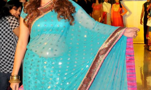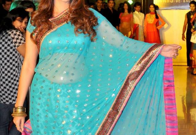 Initially we saw Pooja as a bridal showstopper ,looking breathtakingly gorgeous in an aqua blue Saree .This was followed by the grand finale wherein she donned a stunning black floor length gown which she flaunted playfully as she took the ramp.
