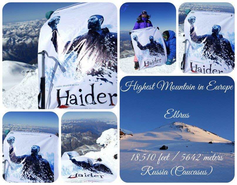 An NRI fan of Shahid went to the base camp of Elbrus (highest mountain in Russia, 18,510 feet above sea level) to hoist the Haider flag on top.