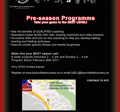 Beyond the boundary consists of coaches from Australia, England and Canada. They have designed a program to `take your game to the next level’ and `make this your best season yet`. The program will be run at the specialist cricket facility on Saturdays and Sundays from 2-4pm and is open to all.
