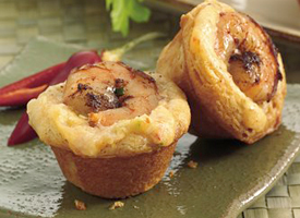 Bake at 400°F. for 10 to 15 minutes or until crust is golden brown. Cool 5 minutes. Remove from muffin cups. Serve warm.