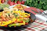 Season with salt and pepper. Serve with warm tortillas, salsa and sour cream.