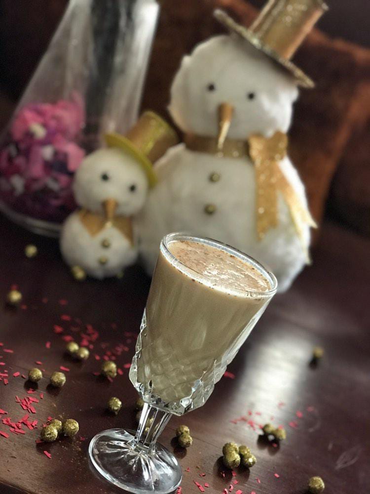 Photo below: Coconut punch with evaporated milk, condensed milk, cinnamon, nutmeg and rum.