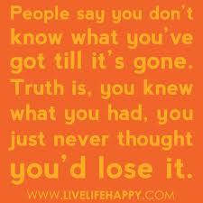 In 1970, the Canadian singer song writer Joni Mitchell released "Big Yellow Taxi" which contained the telling line, "You don't know what you've got till it's gone." Yes, it is easy to take things for granted. This captures the idea of the centuries old proverb, "You never miss the water till the well runs dry." Day after day, some "thing" is just there like the sun or the moon and we become accustomed to it being there. However many things don't have the longevity of the sun and the moon and we can see those things come to an end and disappear and ofttimes it is not until something has disappeared that we may realise its value to us.
