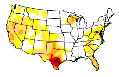 Let's look back in time and see what "normal" March drought conditions look like. Here's the drought map for the end of March 2011: