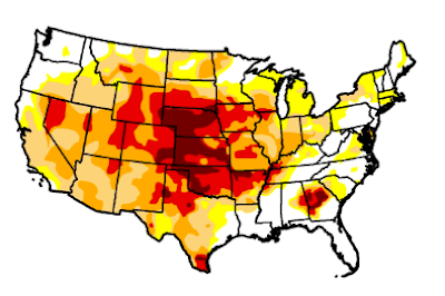 We tend to associate drought with those hot, dry summer days that we commonly experience in June, July and August and tend to expect that wetter conditions throughout the fall, winter and spring will recharge the ecosystem. Last summer's drought, in particular, was one of the worst on record as shown on this Drought Monitor map from September 4th, 2012, right at the end of the hottest weather of the summer growing season: