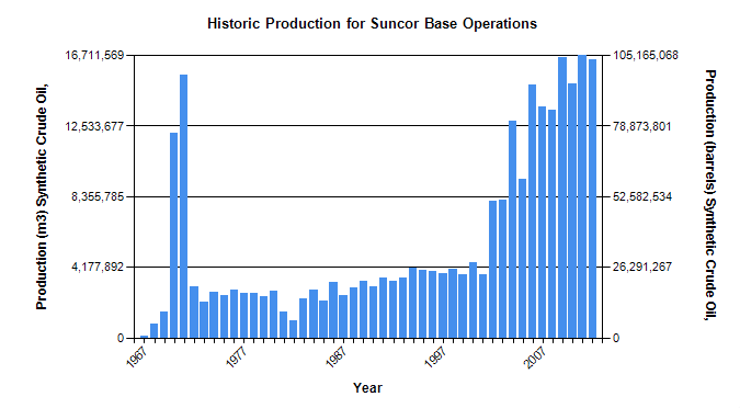 Here is a graph showing the dramatic ramping up of production by Suncor since 1967: